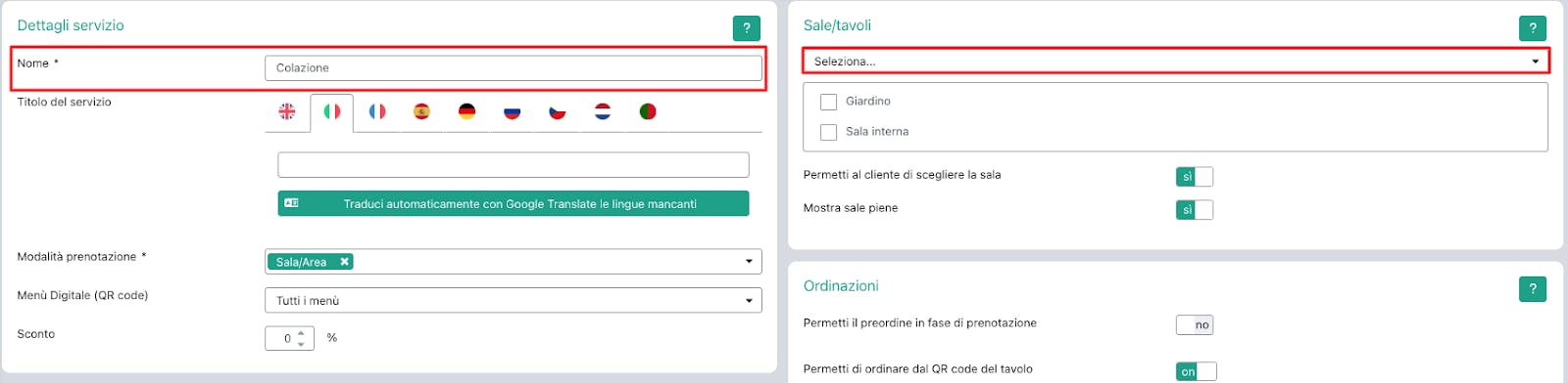 L’articolo spiega come collegare un servizio a una sala specifica del tuo locale. In questo modo, se hai aree dedicate – ad esempio il giardino per la colazione o la piscina per l’aperitivo – potrai associare ciascun servizio alla sala corretta. Così, ogni prenotazione online arriverà già con l’area giusta, evitando errori e semplificando l’organizzazione. La configurazione è semplice e si gestisce in pochi passaggi dalla sezione Servizi e orari.
