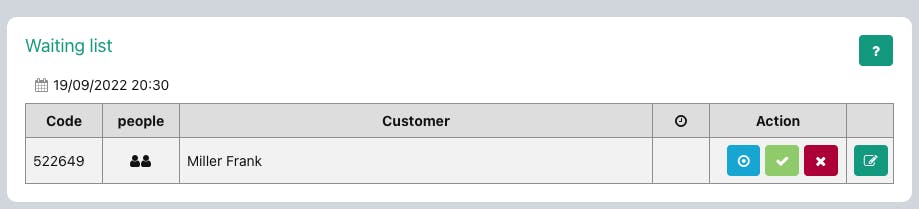 Lista di attesa per disponibilità esaurita: puoi decidere di attivare la lista d’attesa solo quando la sala è al completo. Appena avrai un tavolo di nuovo libero, il cliente sarà informato e potrà confermare o disdire la prenotazione.