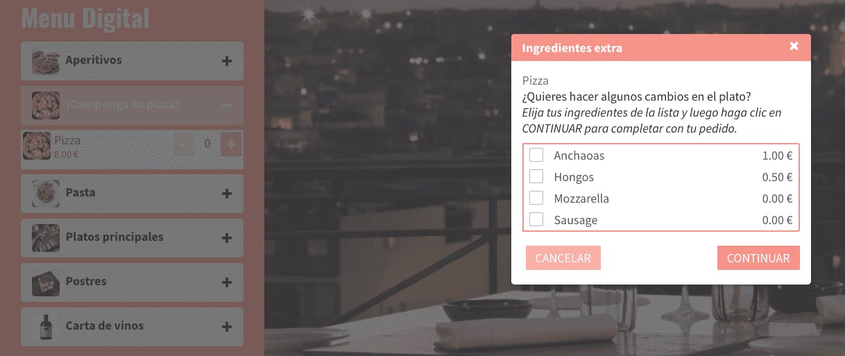 A la hora de hacer la reserva, ¡el cliente podrá personalizar su plato eligiendo entre los ingredientes que hayas insertado!