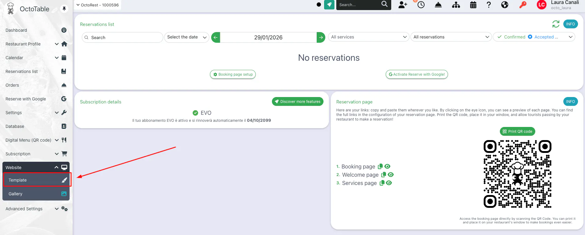 In the Digital menu section, select the OctoTable menu you want to see on your website.