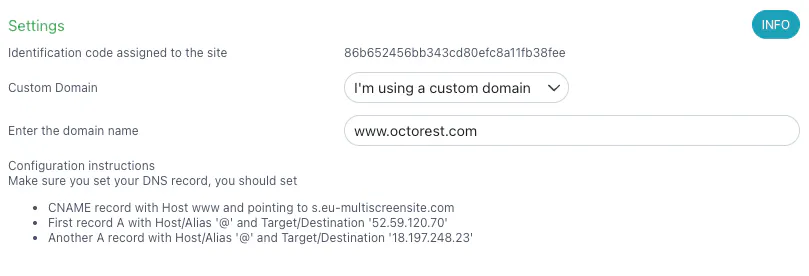 In the Settings section, you have to configure the domain. There are two options: