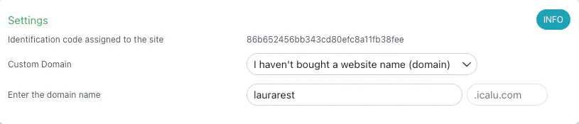 Enter the domain name: it will be automatically connected to the default domain .icalu.com.