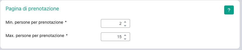 Imposta Il numero minimo e massimo di persone che si possono selezionare al momento di effettuare una prenotazione:
