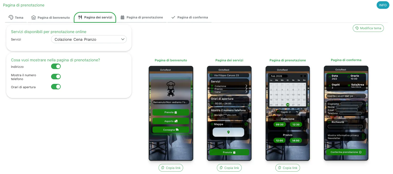 Accedi alla pagina di prenotazione da Configurazione > Pagina di prenotazione