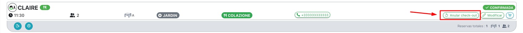 Una vez completado el check-out, visualizarás el texto "Anular check-out", que confirma que la salida se ha registrado correctamente.