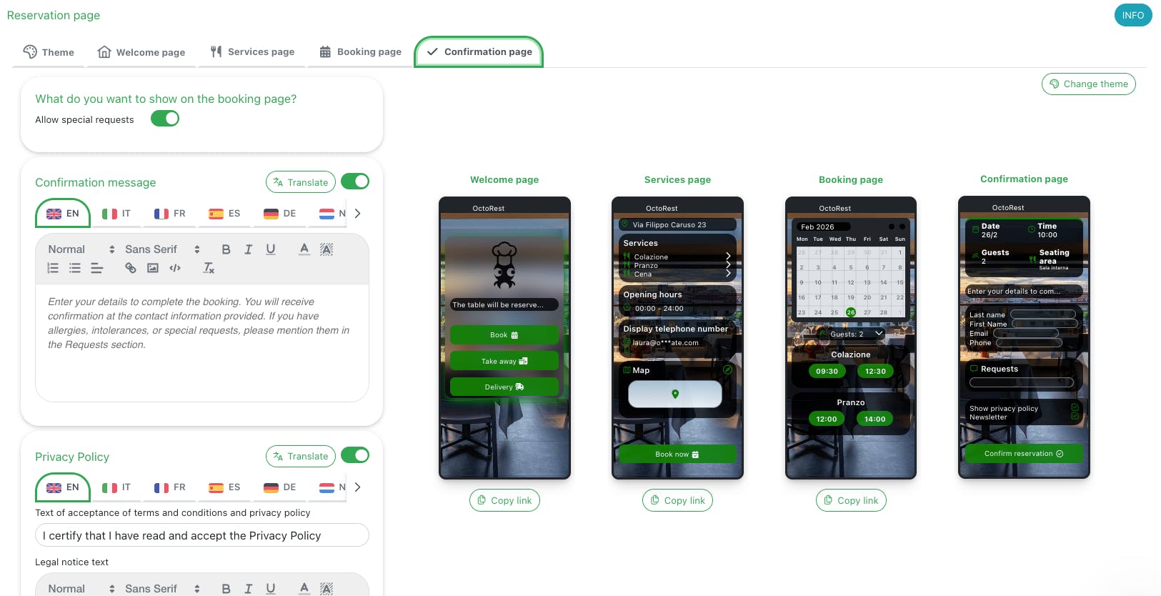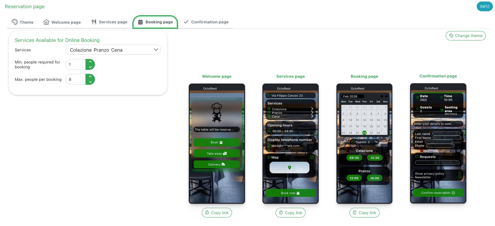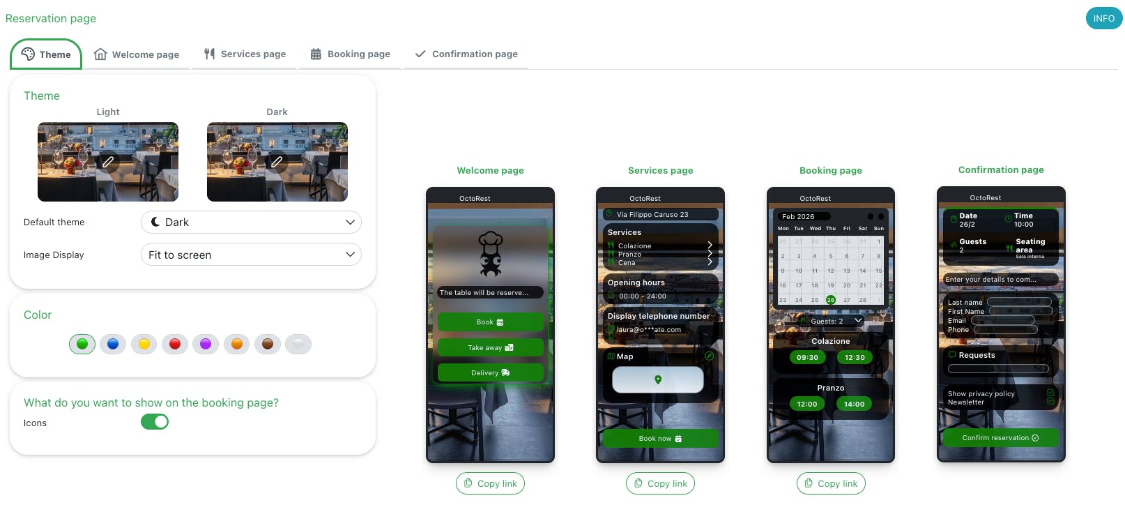 Finally, by modifying the Color, you can change the color of the elements on the booking page. Choose a color that reflects your brand or restaurant identity.