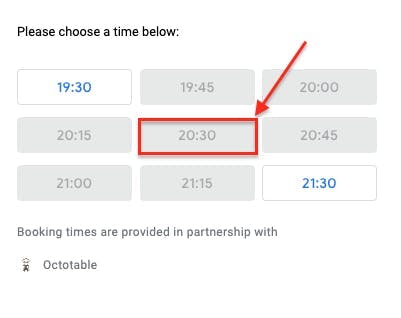 📌 Please note: The maximum number of people who can book on Google depends on the capacity of the table with the highest number of seats created in OctoTable. Example: if only 4-seat tables and one 8-seat grouped table have been created, up to 8 people can book on Google.