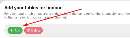 For each seating area created you can create the corresponding tables. Click on Add to add a table