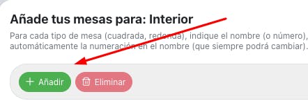 Dale a Añadir para añadir una mesa.
