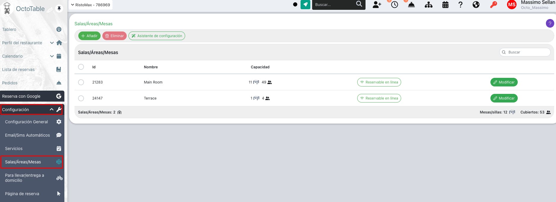 Ve a Configuración > Salas/Áreas/Mesas