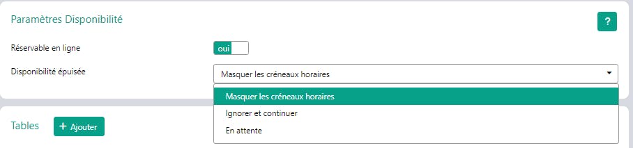 2. Définir sa disponibilité, en décidant si elle est réservable en ligne ou non, et choisir la stratégie à adopter lorsque la disponibilité sera épuisée