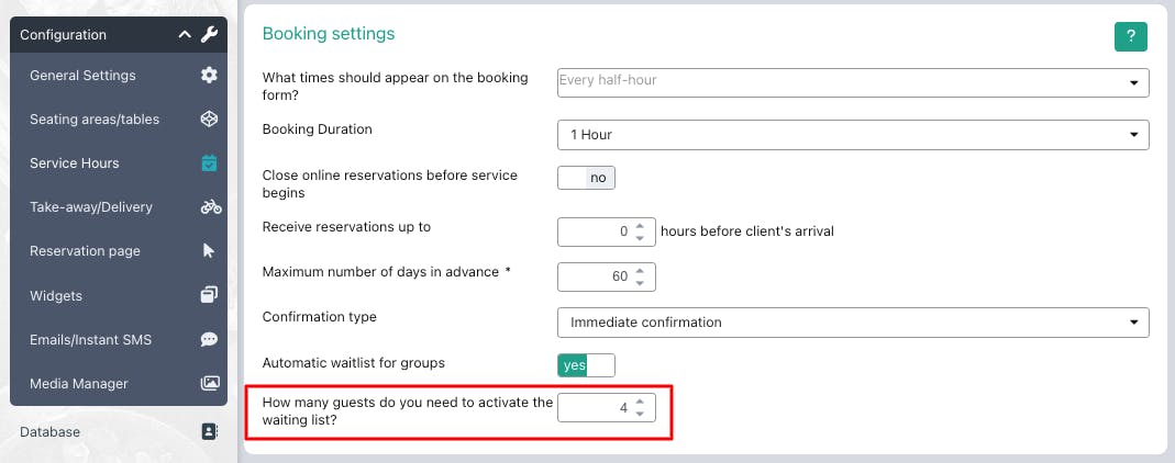 ๐ Please note: You can decide to automatically confirm only bookings for few people and accept only after your verification bookings starting from a certain number of covers. In this case, the Confirmation Type must remain on Immediate Confirmation to enable the Automatic Waiting List for groups option and set the value How many guests do you need to activate the Waiting List?.