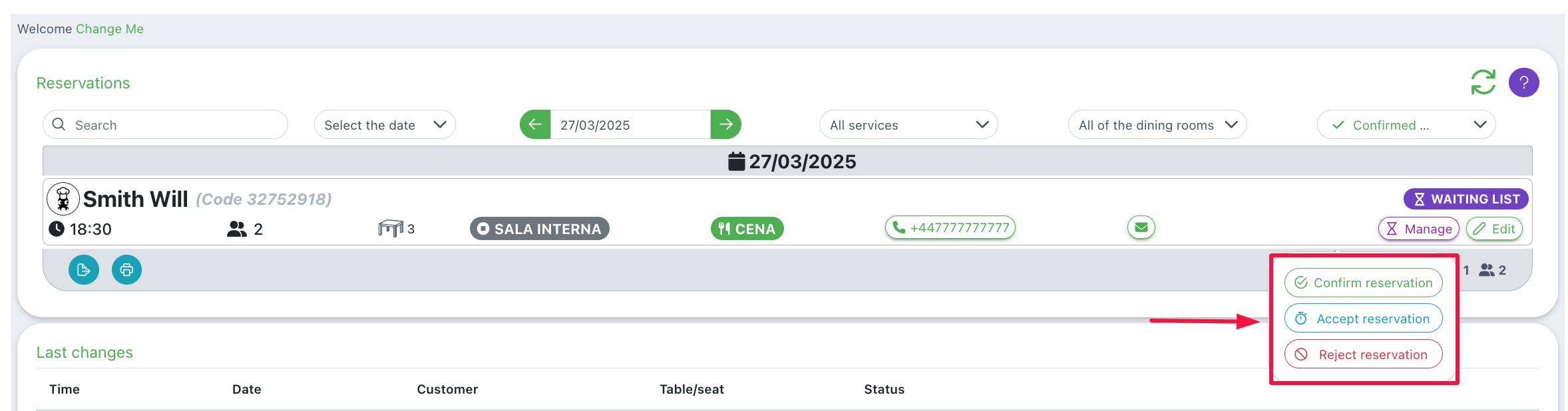 โฐAccept booking: clicking this button the customer will receive an automatic message and will have to confirm the booking within the time limit set in Configuration > General settings > Waiting List
