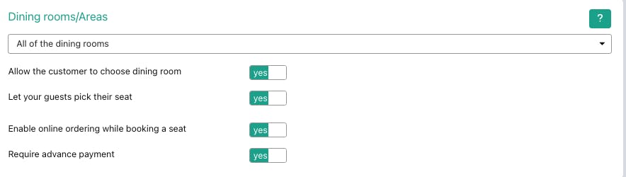 Allow the customer to choose the seating room: if you enable this option and have multiple rooms associated with the service, the customer will be able to read the room description and choose it