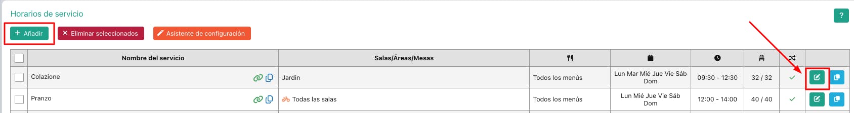 Accede a la sección Configuración > Horarios de servicio y crea uno nuevo o haz clic en el lápiz junto al servicio que quieres modificar:
